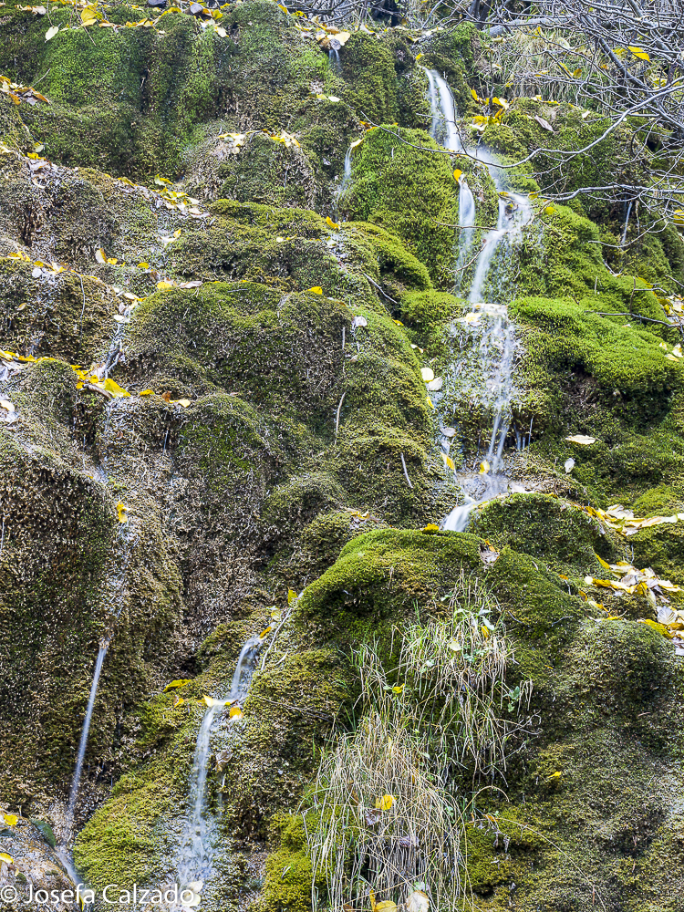 Detalle de las chorreras entre el musgo