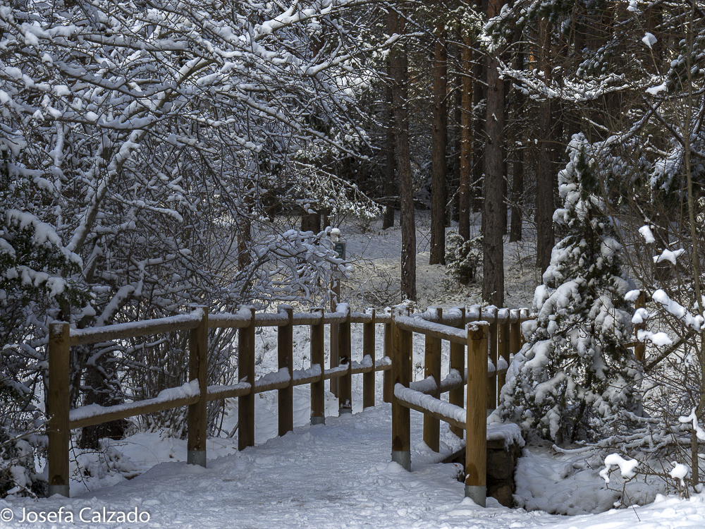 Puente de madera de acceso al parking