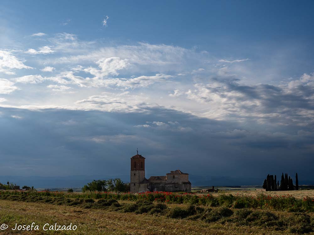 Iglesia de Santa María de los Reyes y al fondo el cementerio de Caudilla