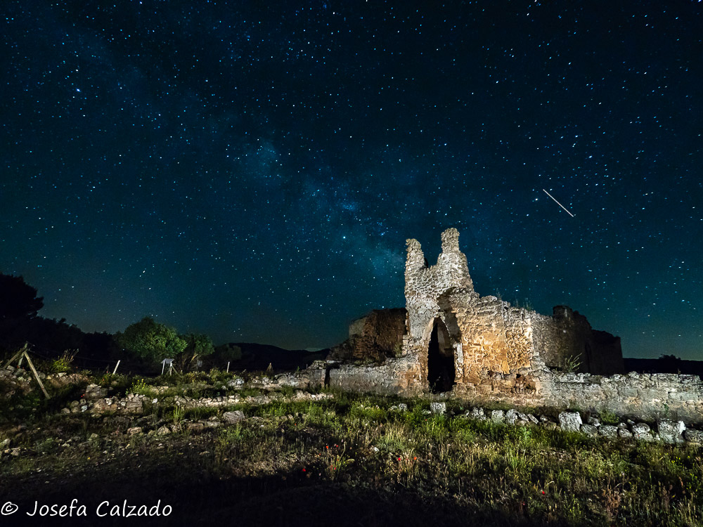 Vía Láctea sobre la Iglesia de Recópolis, con estrella fugaz
