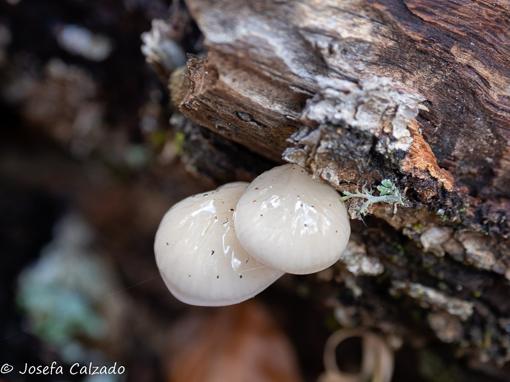 Detalle Oudemansiella mucida, en el que podemos observar a cutícula de intenso color blanco, muy viscosa y brillante.