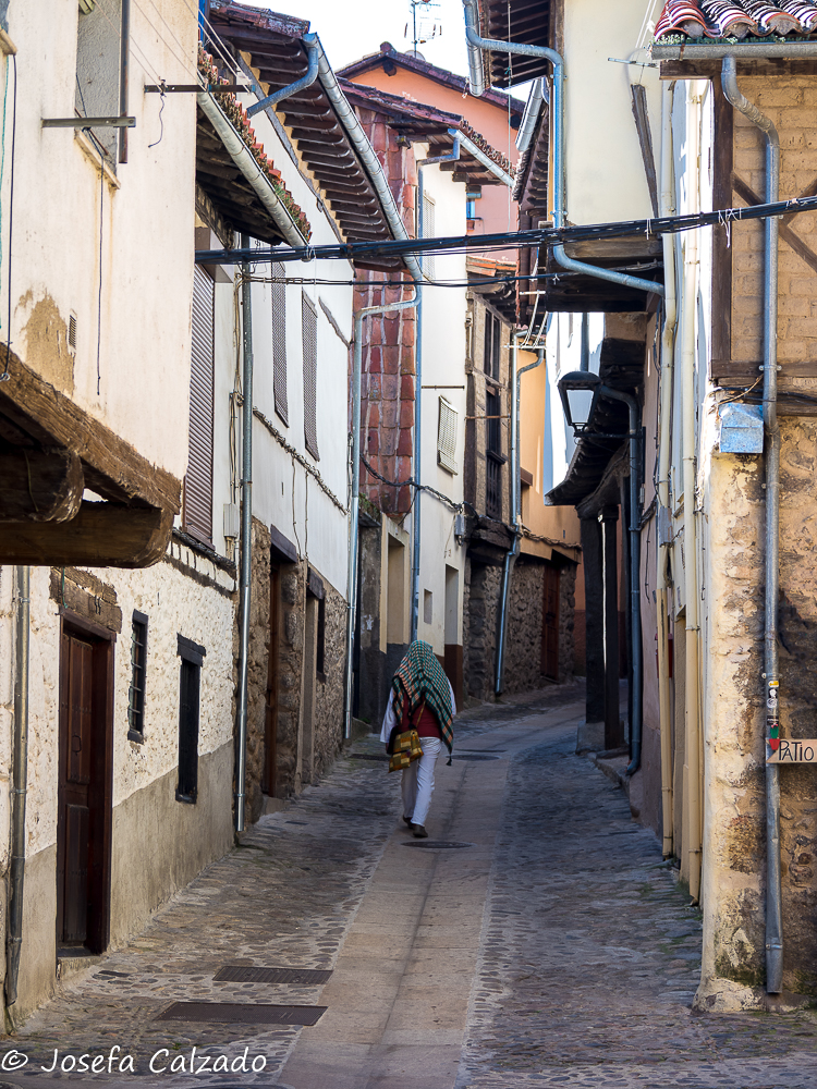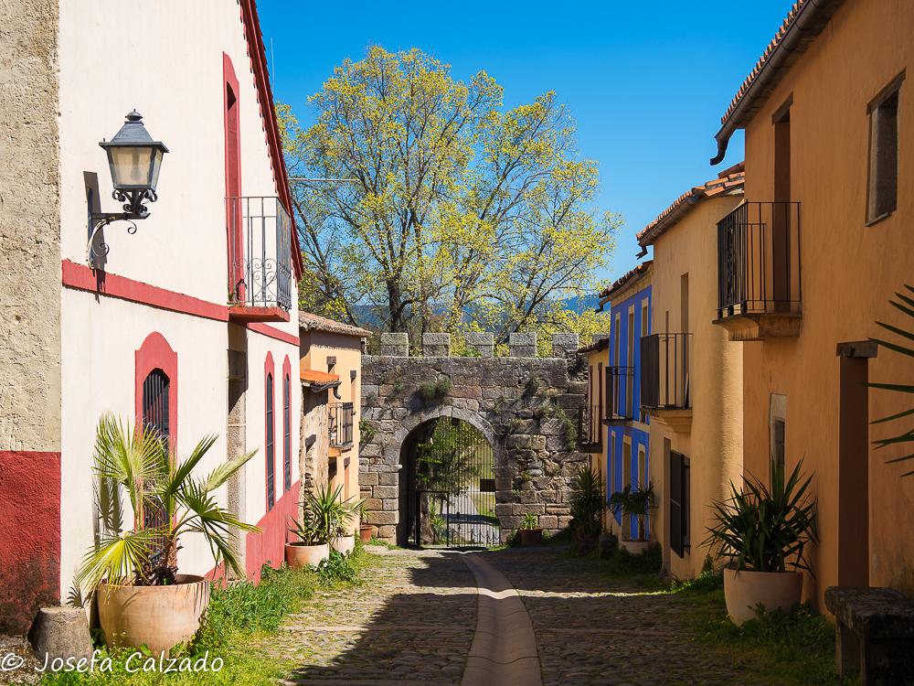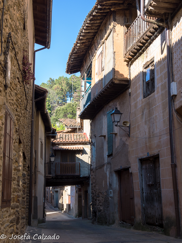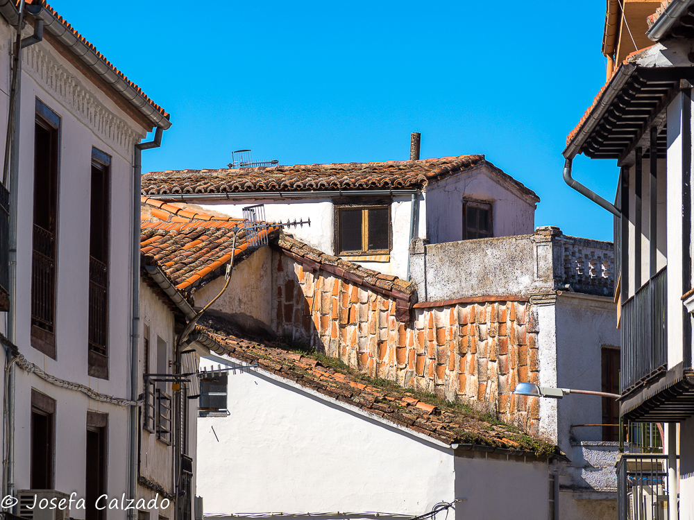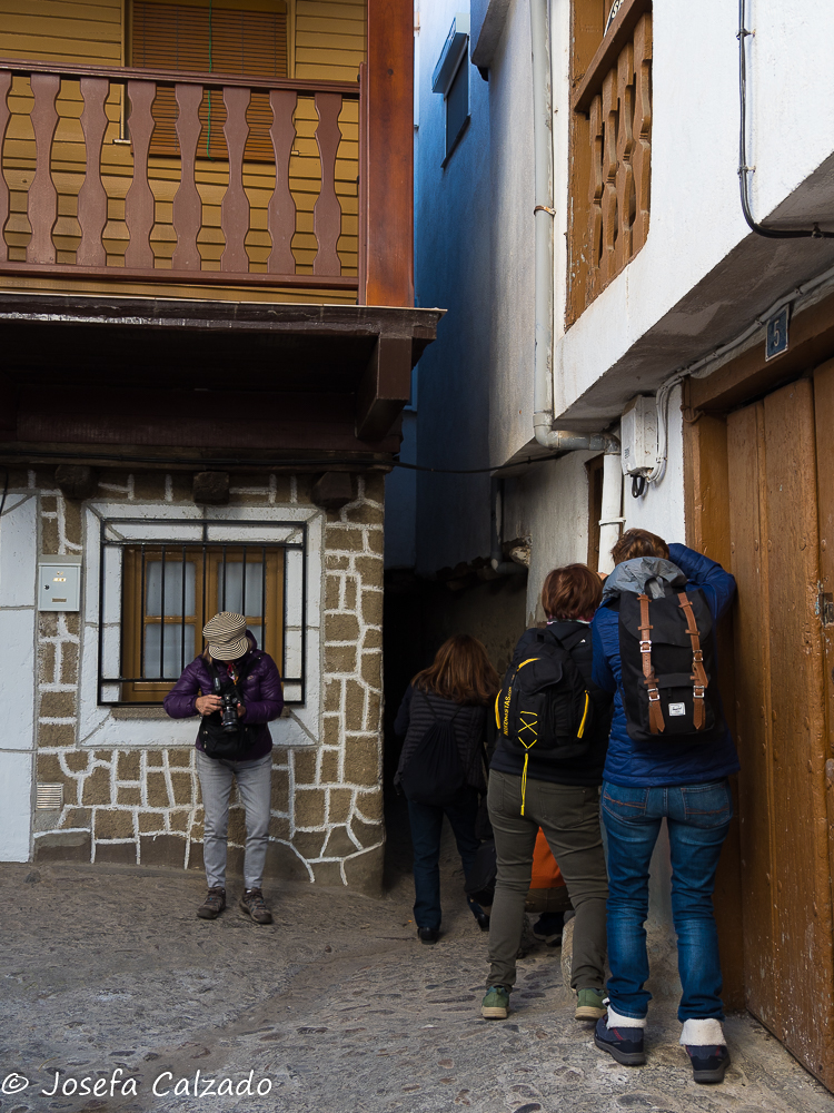 Cada cierto tiempo hago escapadas con mi grupo de fotografía de Majadahonda y siempre me sorprendo de los pueblos tan bonitos que hay en España, esta vez tocaba una ruta por Cáceres en su zona mas septentrional. Empezamos en Hervás, situada en el Valle del Ambroz, el cual cuenta con un barrio judío declarado conjunto histórico-artístico y es uno de los mejor conservados de la Red de Juderías de España. Además, cuenta también con la calle más angosta de España, la llamada Travesía del Moral, de apenas medio metro de ancho. Mucho que ver y muy poco tiempo. Lo primero que hicimos fue subir hasta la Iglesia de Santa María de Aguas Vivas del siglo XIII construida sobre un antiguo castillo templario para contemplar una panorámica del pueblo, pero desafortunadamente estaba cerrada y no pudimos ver su estupendo mirador y el bonito arco que hay bajo él, así que sin mas dilación bajamos hasta la orilla del río Ambroz, cruzando por el Puente de la Fuente Chiquita. Este es un bonito puente de piedra del siglo XVI de un solo ojo, y como curiosidad, deciros que en uno de sus laterales descansa la lápida de Alonso Sánchez, una importante figura histórica de Hervás. Desde aquí subimos por la calle Abajo empezando a callejear por el barrio judío, disfrutando del encanto de sus calles, plazas y balcones, que aún conservan la tradicional arquitectura serrana. Por cierto, nada mas empezar la calle, a la derecha hay un patio de cactus en el que merece la pena perder un par de minutos en verlo. A lo largo de las calles podremos apreciar también algunas fachadas bastante curiosas como la que utiliza la teja árabe en vertical como aislante de la lluvia. Callejeando llegamos a la Plaza de la Corredera que es el centro de la antigua judería y donde destaca la fuente de piedra del siglo XVI.