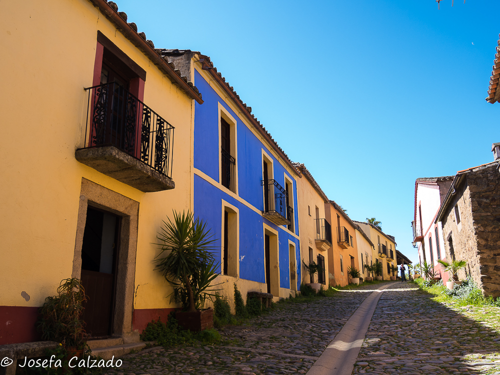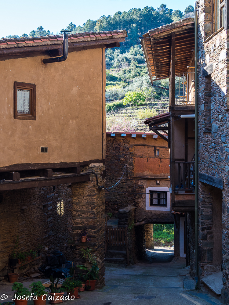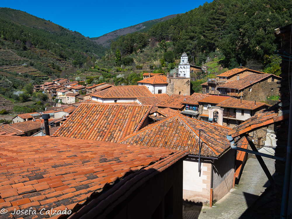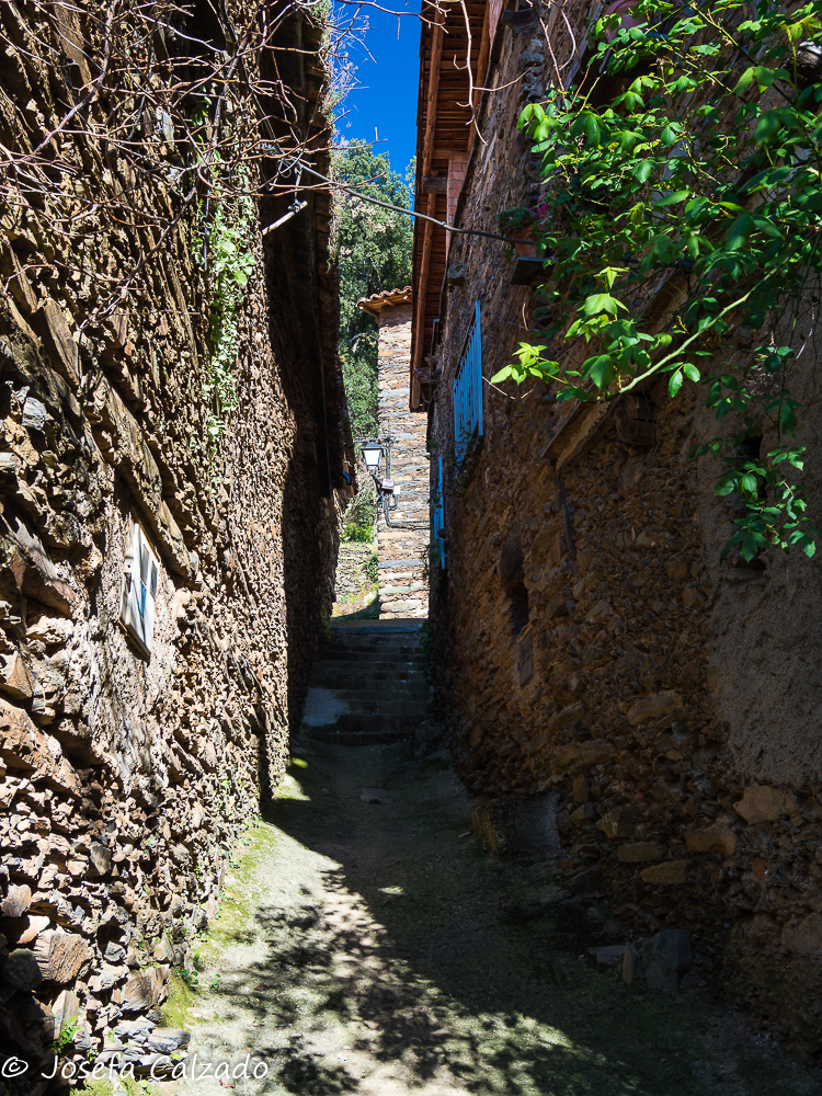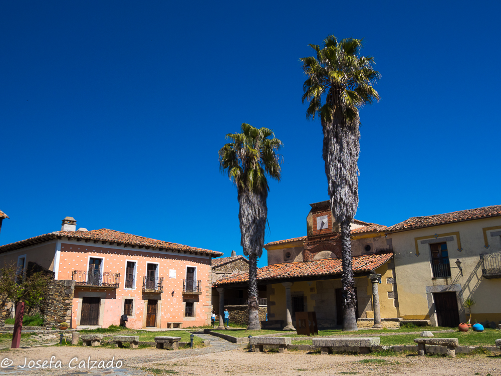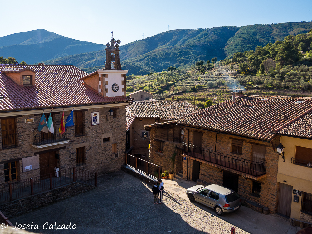 Cada cierto tiempo hago escapadas con mi grupo de fotografía de Majadahonda y siempre me sorprendo de los pueblos tan bonitos que hay en España, esta vez tocaba una ruta por Cáceres en su zona mas septentrional. Empezamos en Hervás, situada en el Valle del Ambroz, el cual cuenta con un barrio judío declarado conjunto histórico-artístico y es uno de los mejor conservados de la Red de Juderías de España. Además, cuenta también con la calle más angosta de España, la llamada Travesía del Moral, de apenas medio metro de ancho. Mucho que ver y muy poco tiempo. Lo primero que hicimos fue subir hasta la Iglesia de Santa María de Aguas Vivas del siglo XIII construida sobre un antiguo castillo templario para contemplar una panorámica del pueblo, pero desafortunadamente estaba cerrada y no pudimos ver su estupendo mirador y el bonito arco que hay bajo él, así que sin mas dilación bajamos hasta la orilla del río Ambroz, cruzando por el Puente de la Fuente Chiquita. Este es un bonito puente de piedra del siglo XVI de un solo ojo, y como curiosidad, deciros que en uno de sus laterales descansa la lápida de Alonso Sánchez, una importante figura histórica de Hervás. Desde aquí subimos por la calle Abajo empezando a callejear por el barrio judío, disfrutando del encanto de sus calles, plazas y balcones, que aún conservan la tradicional arquitectura serrana. Por cierto, nada mas empezar la calle, a la derecha hay un patio de cactus en el que merece la pena perder un par de minutos en verlo. A lo largo de las calles podremos apreciar también algunas fachadas bastante curiosas como la que utiliza la teja árabe en vertical como aislante de la lluvia. Callejeando llegamos a la Plaza de la Corredera que es el centro de la antigua judería y donde destaca la fuente de piedra del siglo XVI.