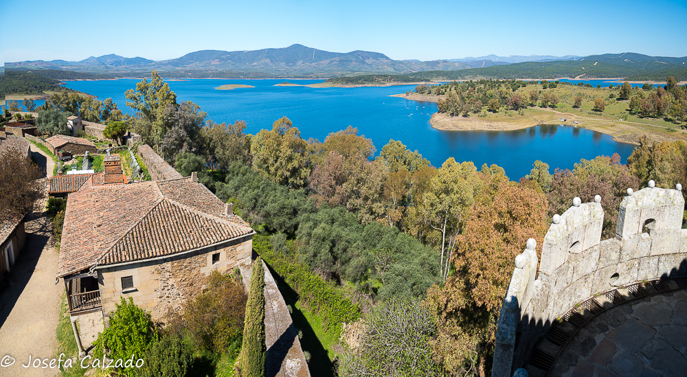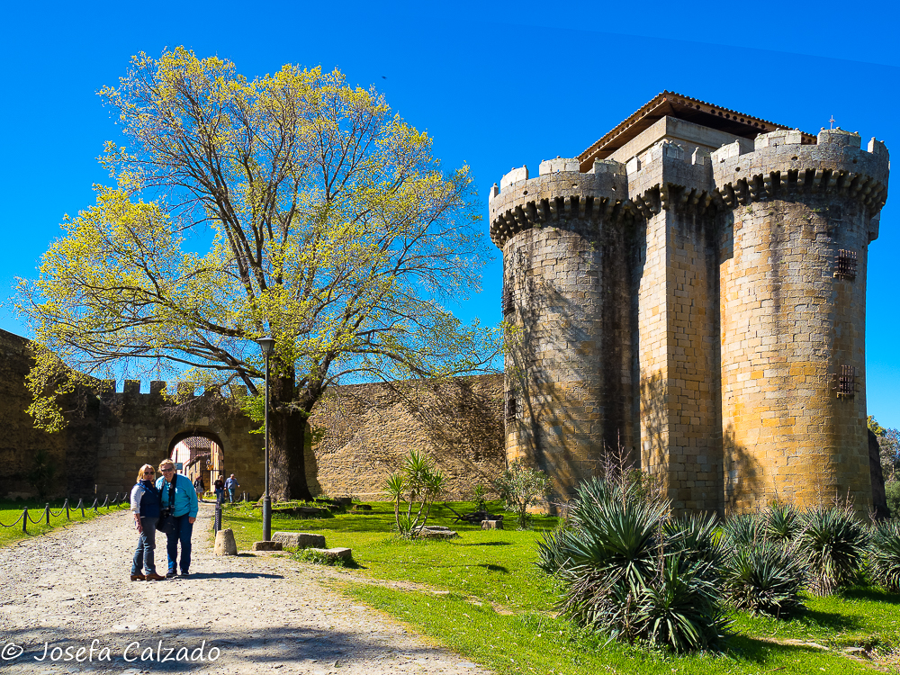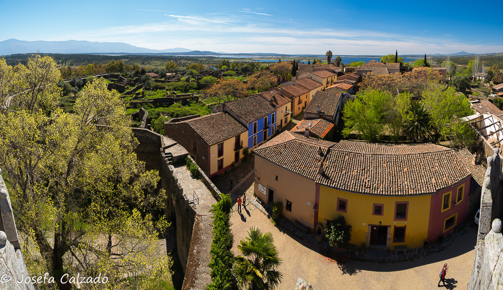 Nuestra siguiente parada fue el pueblo museo de Granadilla es una aldea fundada en el siglo IX por los musulmanes. Posteriormente en 1160, el rey Fernando II de León logró hacerse con el control de esta aldea, la repobló, la dotó de murallas y diez años más tarde le otorgó el título de villa y ya entre 1473 y 1478 la antigua alcazaba pasó a convertirse en castillo. Originalmente esta aldea era denominada por los musulmanes con el nombre de Granada, pero tras la conquista de Granada por los Reyes Católicos en 1492, pasó a llamarse Granadilla. En 1955 tras la creación del embalse de Gabriel y Galán, se decretó la expropiación, por peligro de inundación, de la mayor parte del término municipal de Granadilla aunque al final no ocurriese, sus habitantes perdieron sus tierras, su medio de vida… quedando un único y difícil acceso a este lugar. Por lo cual, en 1964 los últimos habitantes de Granadilla se fueron definitivamente, convirtiéndose en un lugar abandonado. Posteriormente en 1980, nombraron la villa Conjunto histórico-artístico y comenzó la rehabilitación de este bonito lugar. Las casas se han ido manteniendo y recuperando en la mayoría de los casos, gracias a que la localidad se incluyó en el Programa Interministerial de Pueblos Abandonados en 1984. Y hasta aquí la historia. Lo primero al llegar que encontramos es su impresionante castillo, aunque mas que castillo es una torre que forma parte de la muralla almohade que protegía este pueblo y al que merece la pena subir pues sus vistas son impresionantes y te permiten hacerte una idea de cómo fue la aldea. Después dimos una vuelta al pueblo visitando la Plaza Mayor, con el Ayuntamiento y la Iglesia de la Asunción, del siglo XV y perdiéndonos por sus calles, saboreando lo que fue esta aldea que actualmente está en fase de reconstrucción.