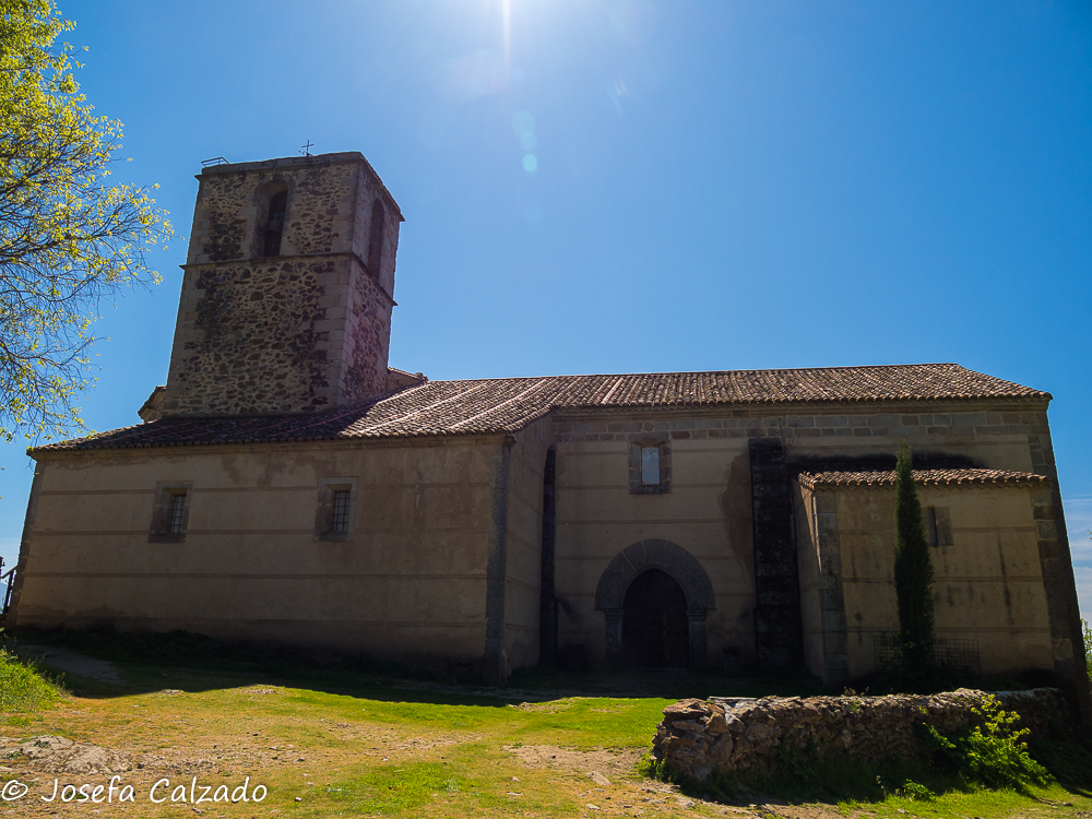 La fachada de la iglesia ha sido restaurada, de hecho cuando llegamos estaban con las puertas, pero aun así, conserva sus características columnas exteriores del atrio, aprovechando para alguna de ellas antiguos elementos de la época romana, y sus elaboradas tallas de madera del altar. Siendo especialmente curioso el Cristo de brazos articulados ubicado bajo el altar, una talla de gran realismo.