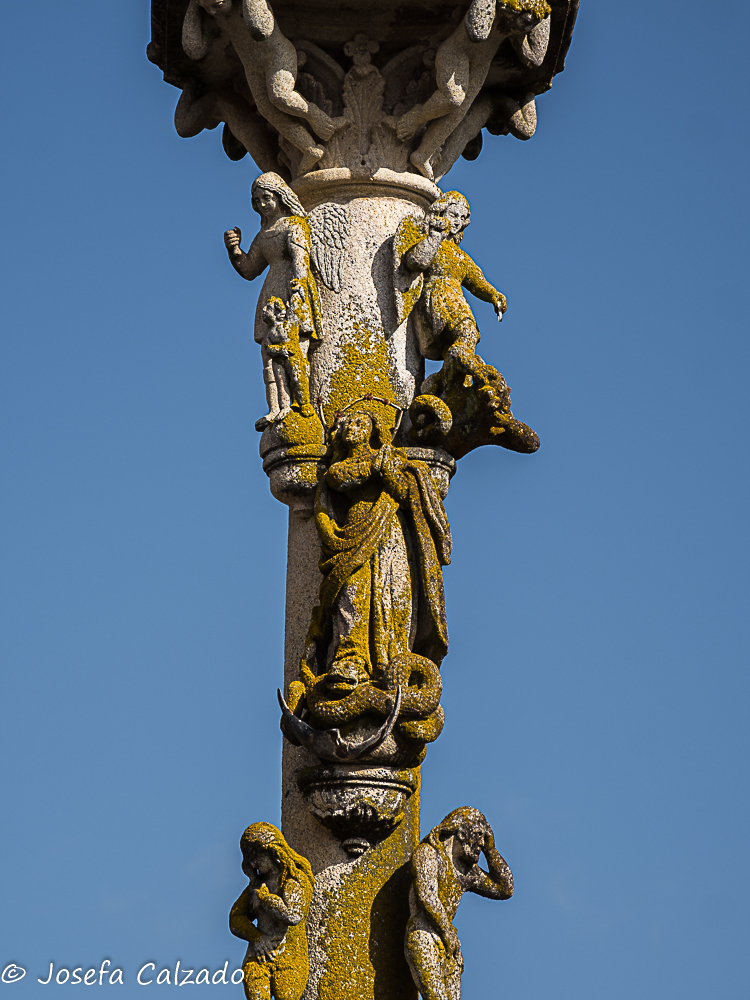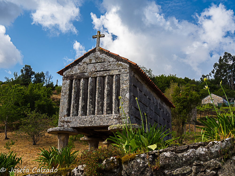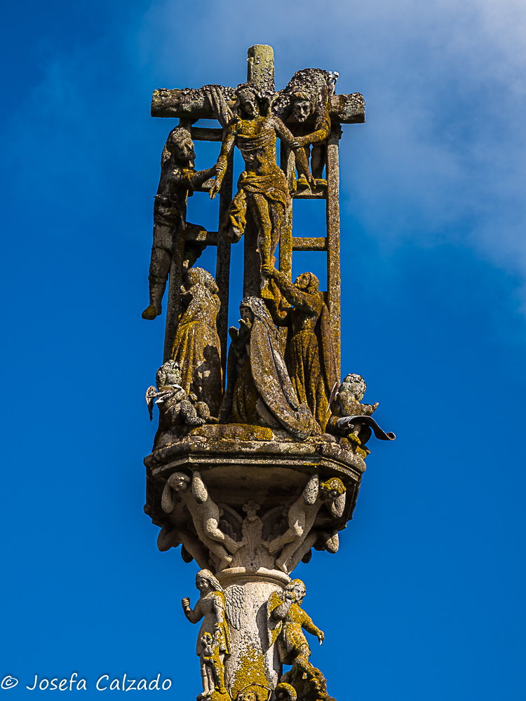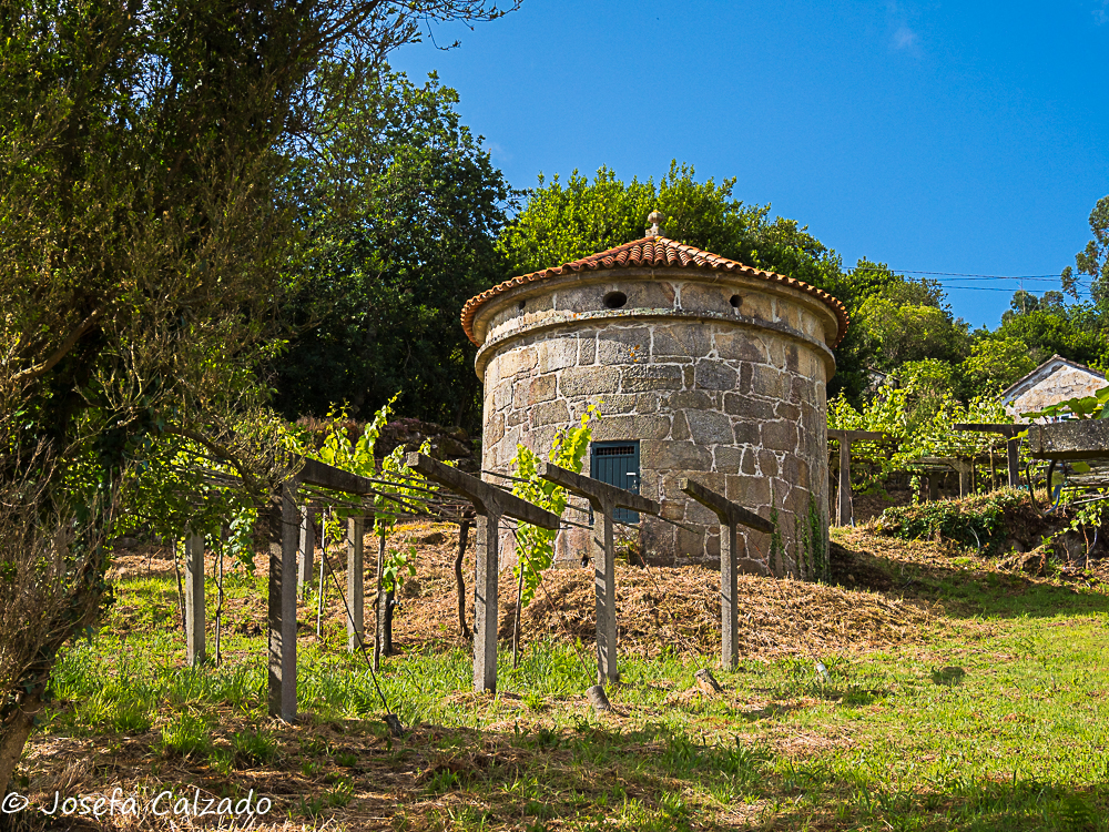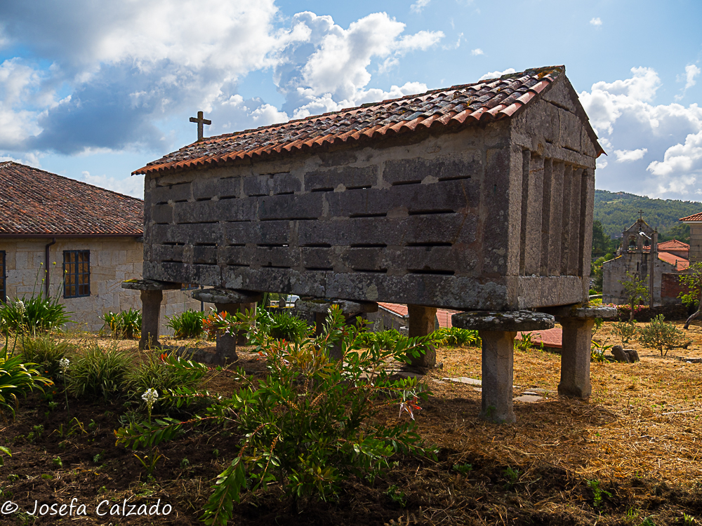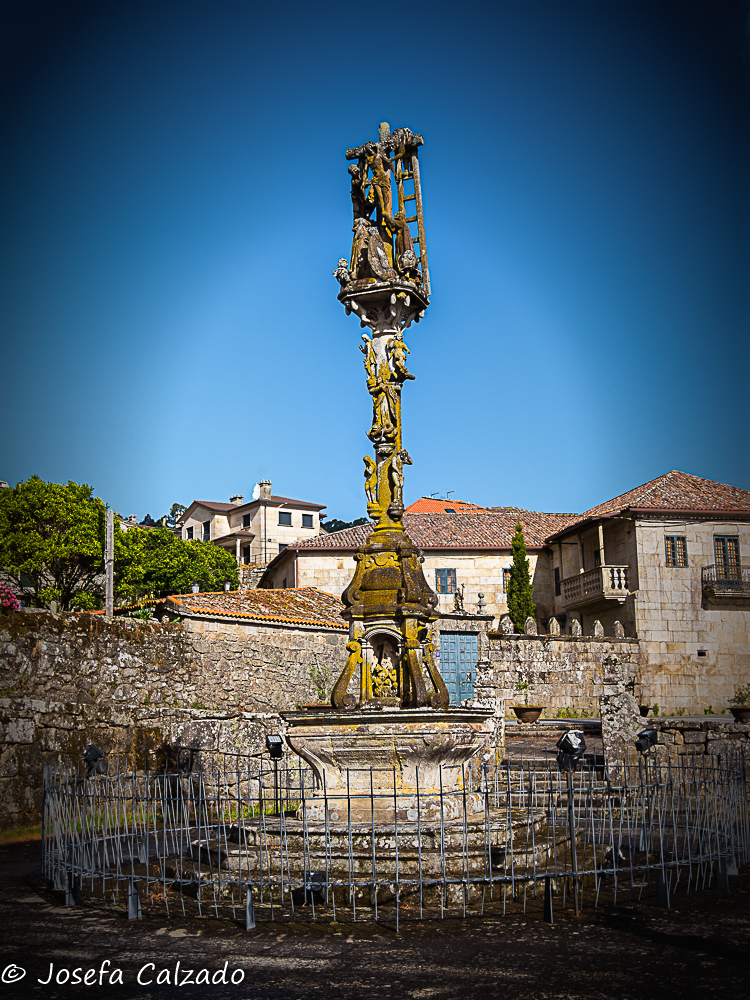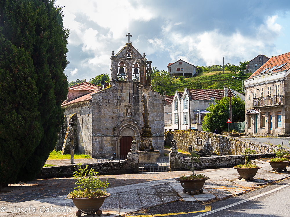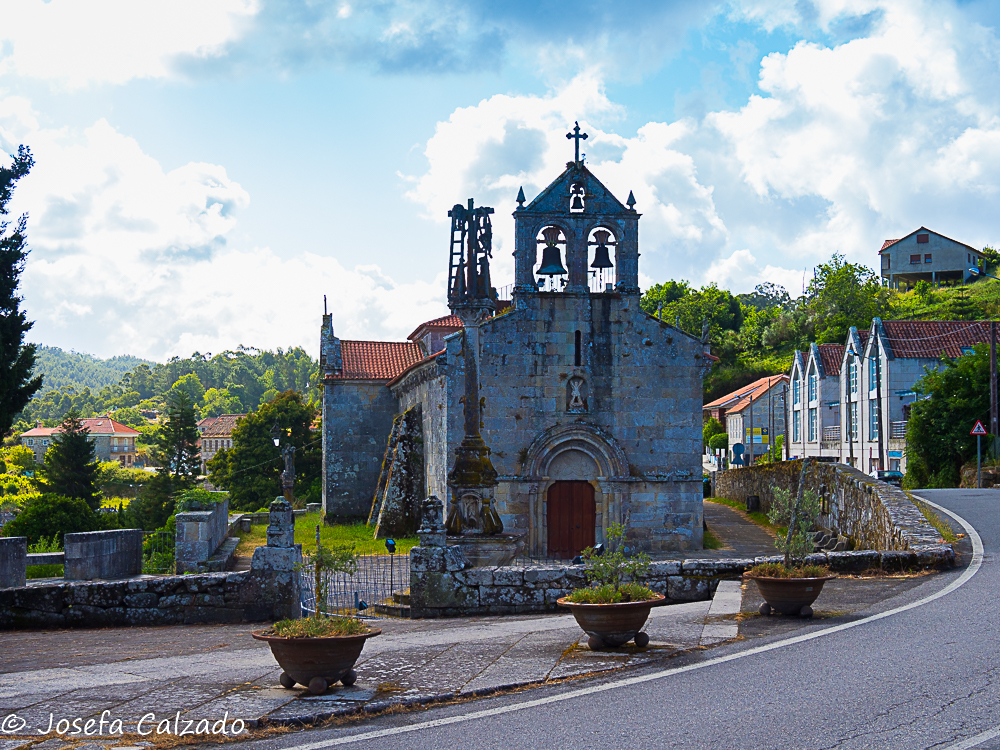 Seguimos nuestro recorrido haciendo una parada en Hío en la Ría de Aldán para contemplar el conjunto monumental que forma el magnífico Cruceiro de Hío, la Iglesia Parroquial de San Andrés, con su bella portada románica; y la Casa Rectoral. En el Cruceiro de Hío podemos observar numerosas tallas y rostros talladas en un solo bloque de piedra en 1872 por el maestro Cerviño. Destaca por la laboriosidad del trabajo la exquisitez del mismo y es considerada una joya del románico. El tema de la composición es Historia de la salvación de la humanidad. Frente al cruceiro está la Iglesia Románica de San Andrés con una fachada del siglo XII y planta de cruz latina. Las bóvedas son góticas y barrocas y el altar mayor está realizado en piedra policromada. Al otro lado del camino esta la Casa Rectoral, palacio rural, pazo abacial, levantada por Ventura de Aldao en el siglo XVII, una verdadera mansión rural, donde podemos encontrar un antiguo reloj de sol y sus magníficos jardines.
