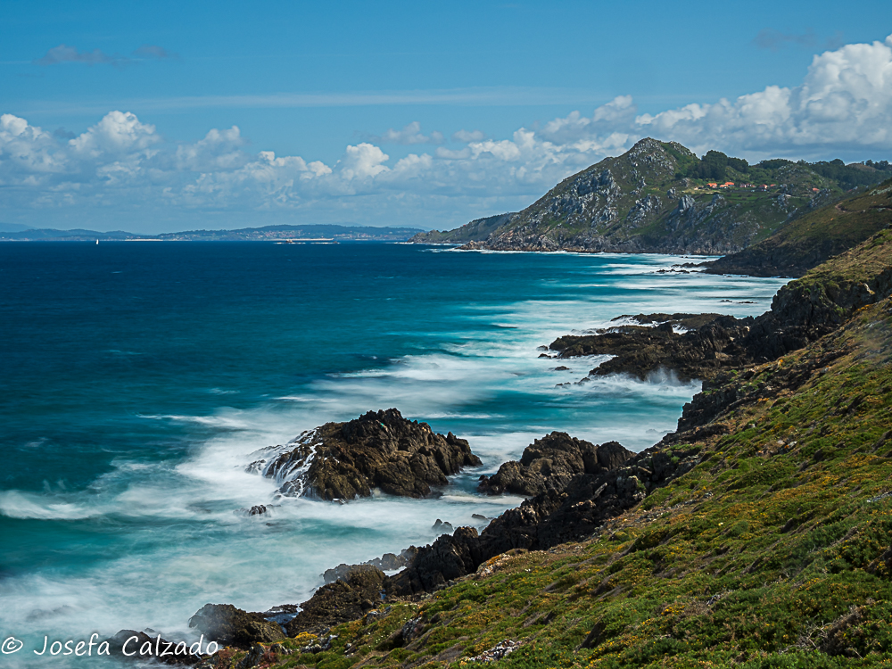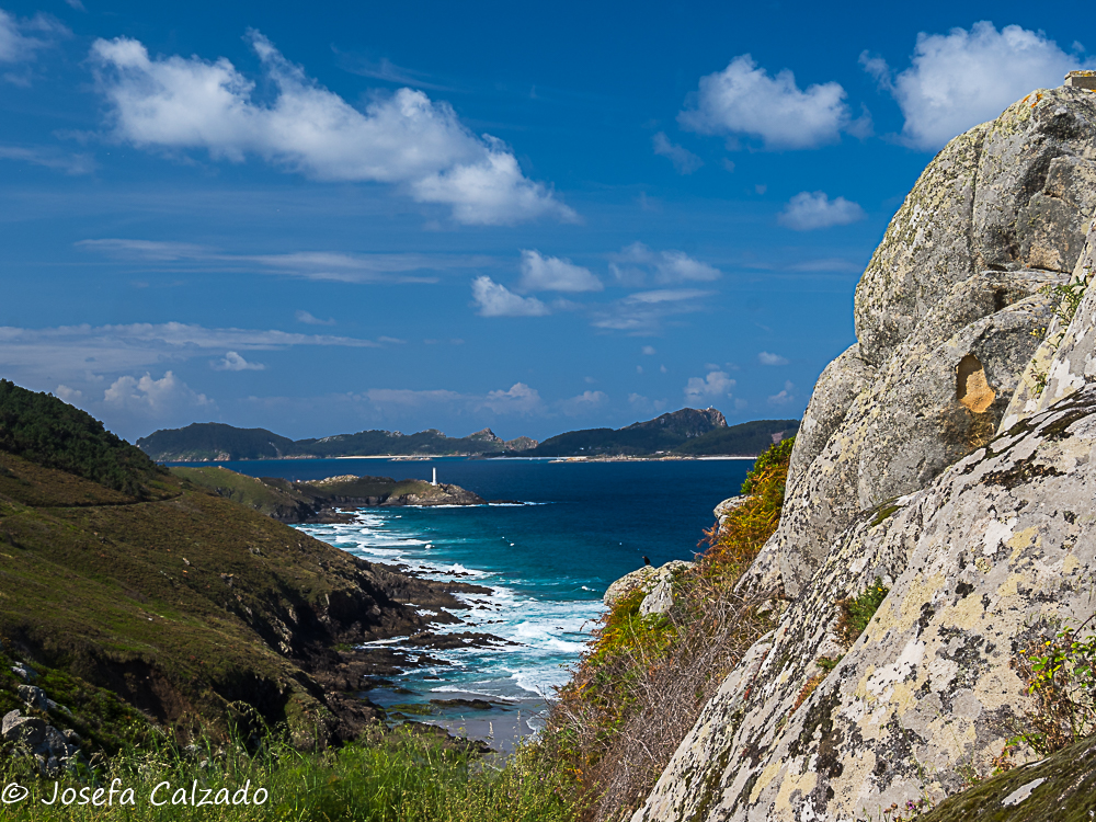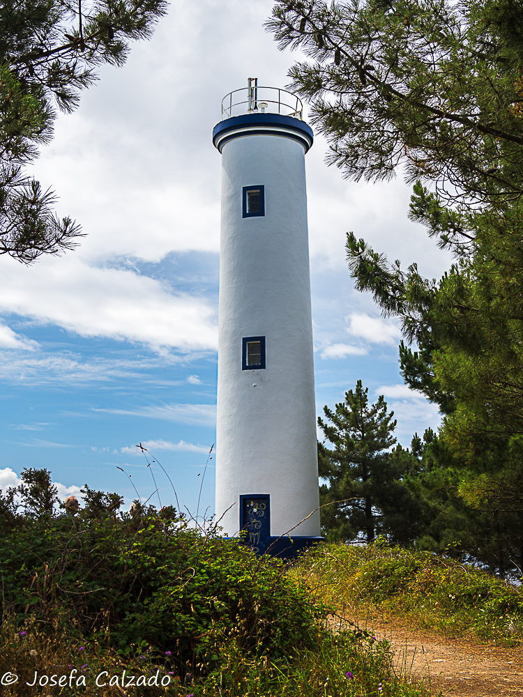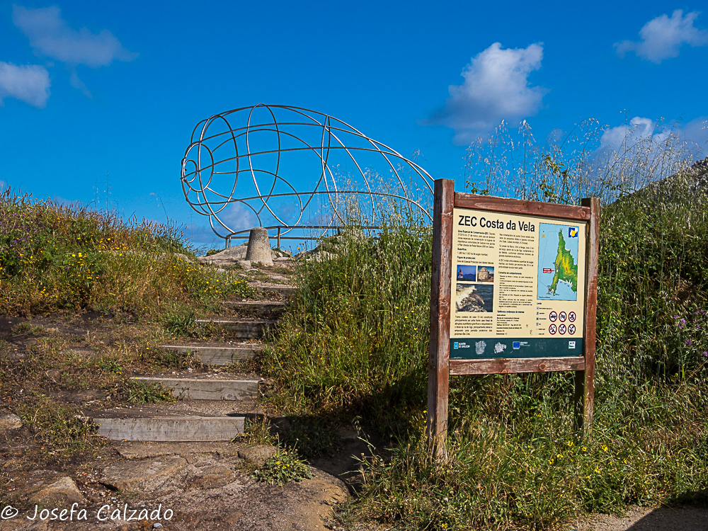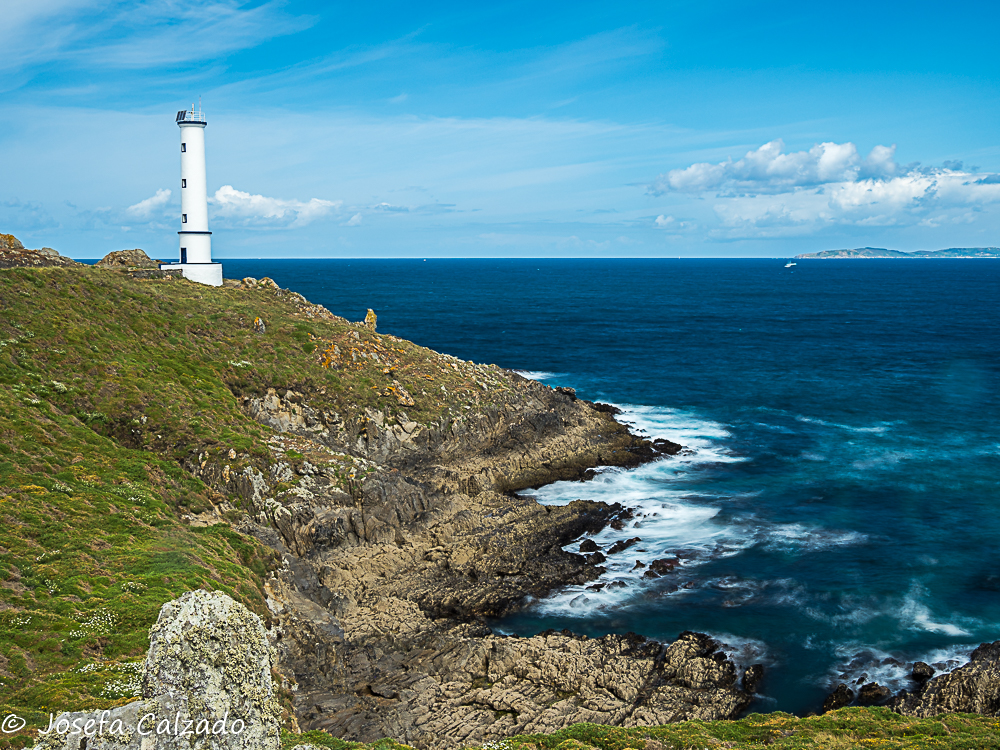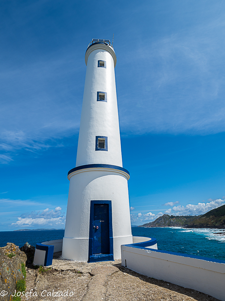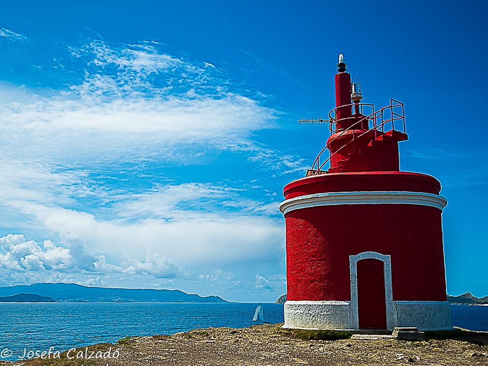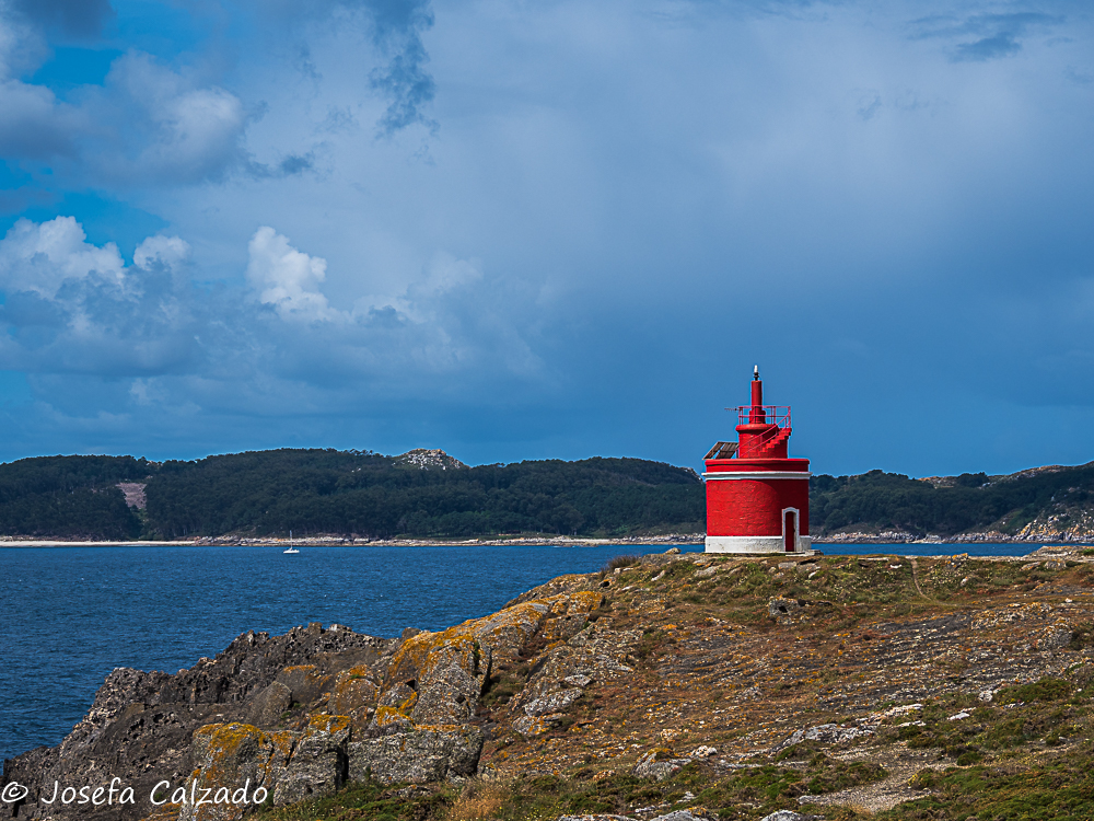 Comenzamos nuestra ruta en el Mirador de la Caracola, en Donón, donde se puede dejar el coche e ir andando. También se puede coger la pista de tierra que sale de ahí y llegar a un parking bastante grande y gratuito que hay al final de ella. Aunque el recorrido parece grande para ver todos los faros, si disponemos de 2 horas se puede hacer bastante bien, aunque si lo hacéis en verano recomendaría utilizar todo el día para disfrutar de cualquiera de sus maravillosas playas. Como no era nuestro caso, tomamos el camino que pasa por la Playa Melide y nos dirigimos hacia el faro mas alejado y el que da nombre a la zona; el Faro Home desde donde se ve toda la Costa da Vela, las Islas Cíes, la Isla de Ons y el Monte de O Facho. Este es uno de los mas altos de Galicia, cilíndrico y de 3 plantas con puerta y ventanas pintadas en azul. Como curiosidad, al lado del faro en su lado izquierdo podéis ver la escultura de un guepardo en las rocas disfrutando de la espectacular vista el mar Atlántico. De aquí deshaciendo el camino accedemos al Faro de Punta Robaleira o Faro Rojo, llamado así por el color rojo pintado directamente sobre el granito. Este es un faro de cantería. Volviendo por el camino vamos por el pinar hacia el Faro da Punta Subrido que es el que está mas cerca del parking justo a mano izquierda donde comienza la Ría de Vigo y la ensenada de las playas de Barra, Viñó y Nerga, dejando a mano derecha la playa de Melide, el faro de Punta Robaleira, las Islas Cíes de fondo y el Faro Home. Este faro se parece bastante al Faro Home, solo que este tiene 2 plantas, dispone también de puerta y ventanas pintadas en azul.