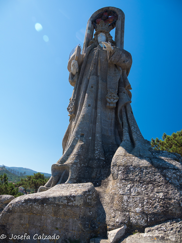 De aquí volvimos a Baiona para dar un paseo por el casco antiguo, subir al monte Sansón a contemplar la ciudad desde lo alto y ver la Virgen de la Roca. Obra inaugurada en 1930, tiene 15 metros de altura y representa a la Virgen sosteniendo en su mano derecha una barca-mirador al que se accede por una escalera interior de caracol realizada en piedra. Fue erigida por suscripción popular para ser guía de navegantes al puerto de Baiona y testimonio de la arribada de la Carabela Pinta. Las vistas son impresionantes.
