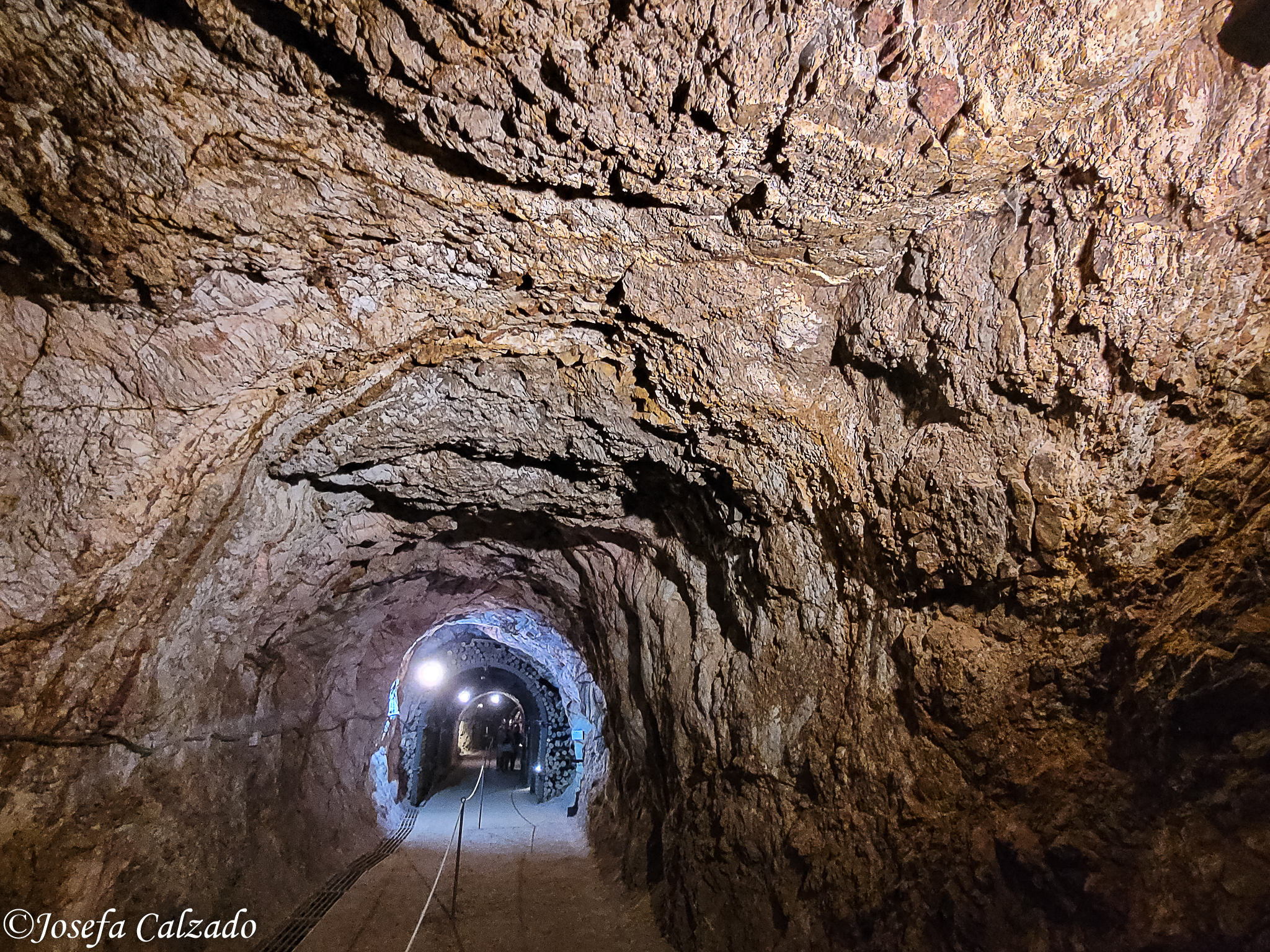 De allí nos fuimos a la Mina Peña de Hierro, donde nos adentramos en una auténtica mina a cielo abierto, atravesando una galería minera, el túnel Santa María, y saliendo directamente a la Corta de Peña de Hierro. La galería fue excavada en 1883, primero fue túnel de extracción y luego galería de transporte por donde salía el estéril. Tiene una longitud de 200m por 2,8m de alto y 3,6 de ancho. Como dato interesante, muy cerquita de aquí es donde nace el río Tinto y se desarrollan parte de los estudios de INTA y la NASA.